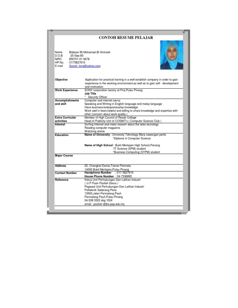Contoh Resume Pelajar Latihan Industri / Edoc Site Contoh Resume Latihan Industri